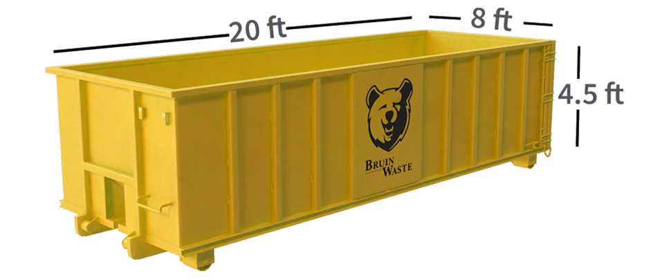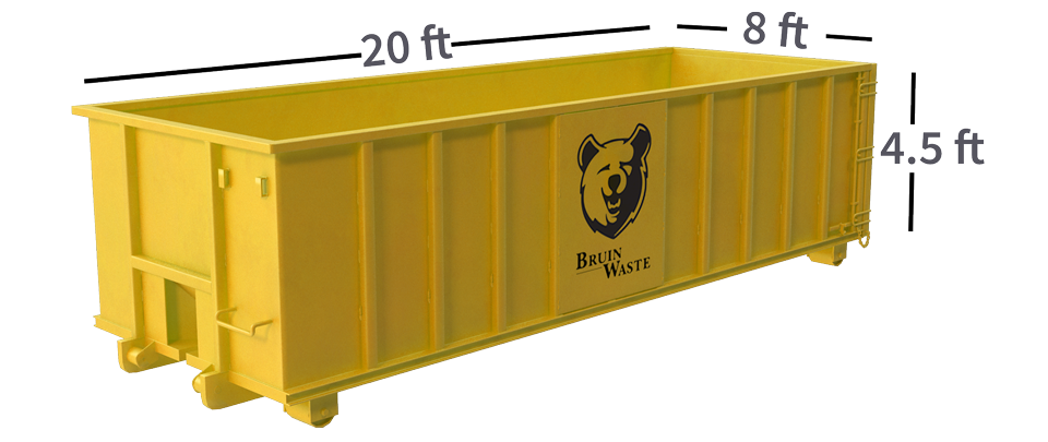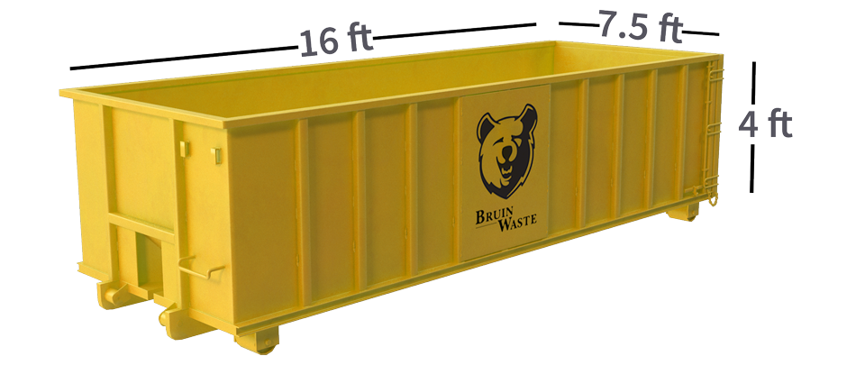 At Bruin Waste Management, we offer three size options for dumpsters to accommodate any project, regardless of scale. Our 12 cubic yard dumpster is perfect for hauling heavy debris, small residential cleanouts, garage cleanups, or landscaping projects.